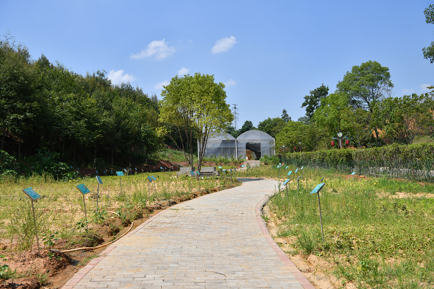 中医药科普基地首期投资1000万元,占地600亩,其中中草药标本园100亩。种植了300多个品种,有草本类,藤类,灌木类,乔木类等,常见的有鱼腥草、车前草、蒲公英、马齿苋、艾草、栀子、草珊瑚、薄荷、辛夷花等。基地也适合开展各种科普活动,设有手工制作香囊室,膏方制作室,中药炮制室,标本展览室等,基地内建有中医药文化宣传长廊、神农雕像、药泉瀑布、休闲广场等景点。