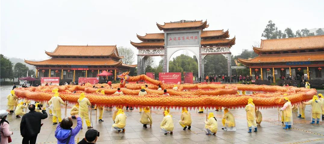 在五龙客家风情园处处散发着客家文化的气息,古老的客家水车、典型的客家围屋建筑、美味的客家美食。这里每年都会举办富含客家文化活动,如客家山樱花节、二月二龙抬头、客家米果节、重阳敬老节。