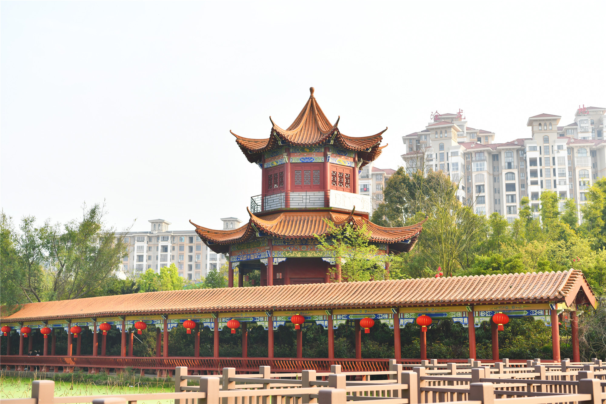 文昌阁与状元桥是为了纪念南宋赣州籍状元池梦鲤而建,为弘扬客家人崇文重教的优良传统。景点由状元桥、九曲桥、文昌阁、学习长廊、荷花池组成,状元桥景点位于美丽的五龙湖中,山水环抱,鸟语花香,清幽恬静,是静心修养的好地方。“状元桥”意喻书生、学子踏过此桥,将会高中榜首,成为国家栋梁之才。