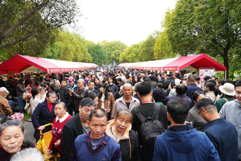 从空中俯瞰,蜿蜒的游园队伍与熙攘的观众人群交织在一起,仿佛一条流动的江河,汇聚成这个春天最动人的画面。